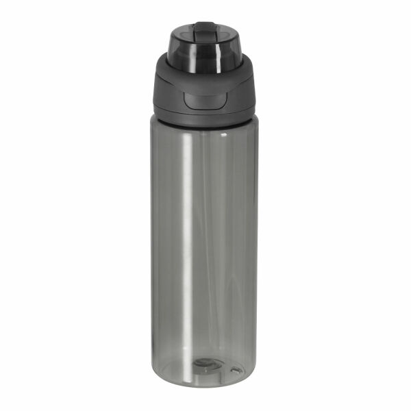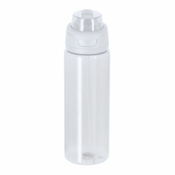 Fles met een capaciteit van 750 ml, gemaakt van resistent RPET en in een doorschijnende afwerking. Met een dubbel drinksysteem, rietje en drinkgat. Duwsluitklep en opvouwbare handvat. BPA-vrij.