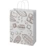 Laat jouw merk professioneel en duurzaam opvallen met custommade papieren tassen van AtmR Gifts. Onze papieren tassen zijn volledig te bedrukken in jouw eigen huisstijl en ideaal voor winkels, beurzen, evenementen en cadeauverpakkingen. Je kiest zelf het formaat, het type handvat en het design, zodat de tas perfect aansluit bij jouw merkidentiteit. Een stijlvolle en milieuvriendelijke manier om jouw bedrijf extra zichtbaarheid te geven. Minimale order afname is 250 stuks, voor deze onderstaande Custom made papieren tassen.